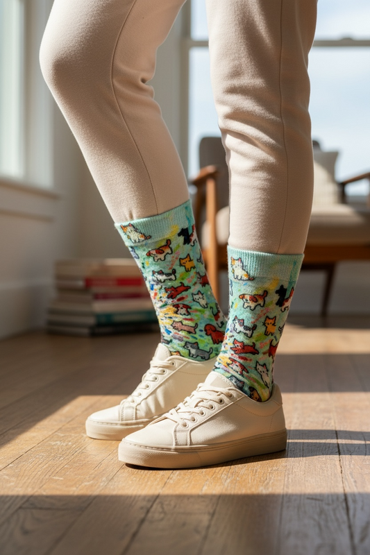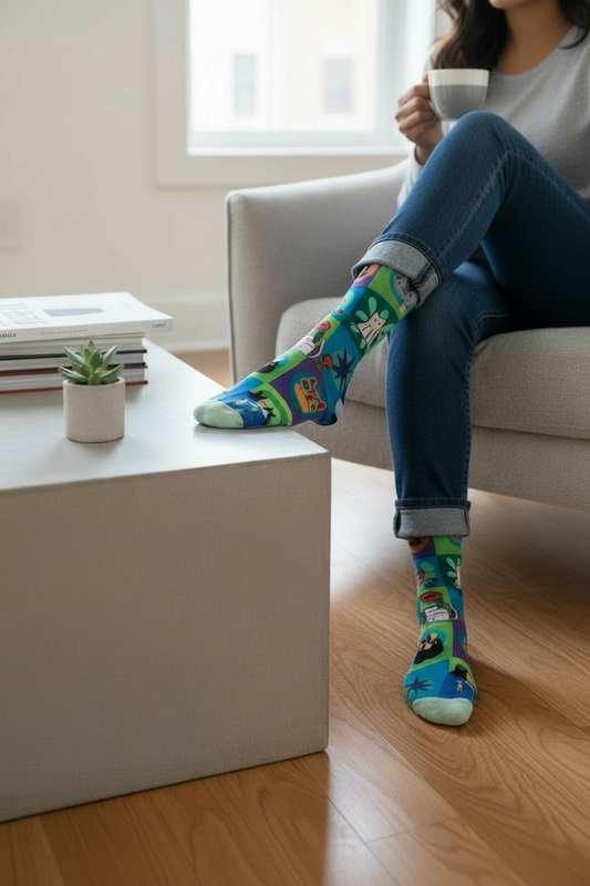 Çekmecendeki sıkıcı çorapları unut, eğlenceyi ayağına getir! 🎉 Jolly Goody’de her ruh haline ve her stile uygun rengârenk baskılı çoraplar seni bekliyor. Kendin için seç ya da sevdiklerine hediye et, fark etmez… Önemli olan keyif almak ve tarzını yansıtmak. Hadi, gel sen de en eğlenceli çoraplarını hemen keşfet!