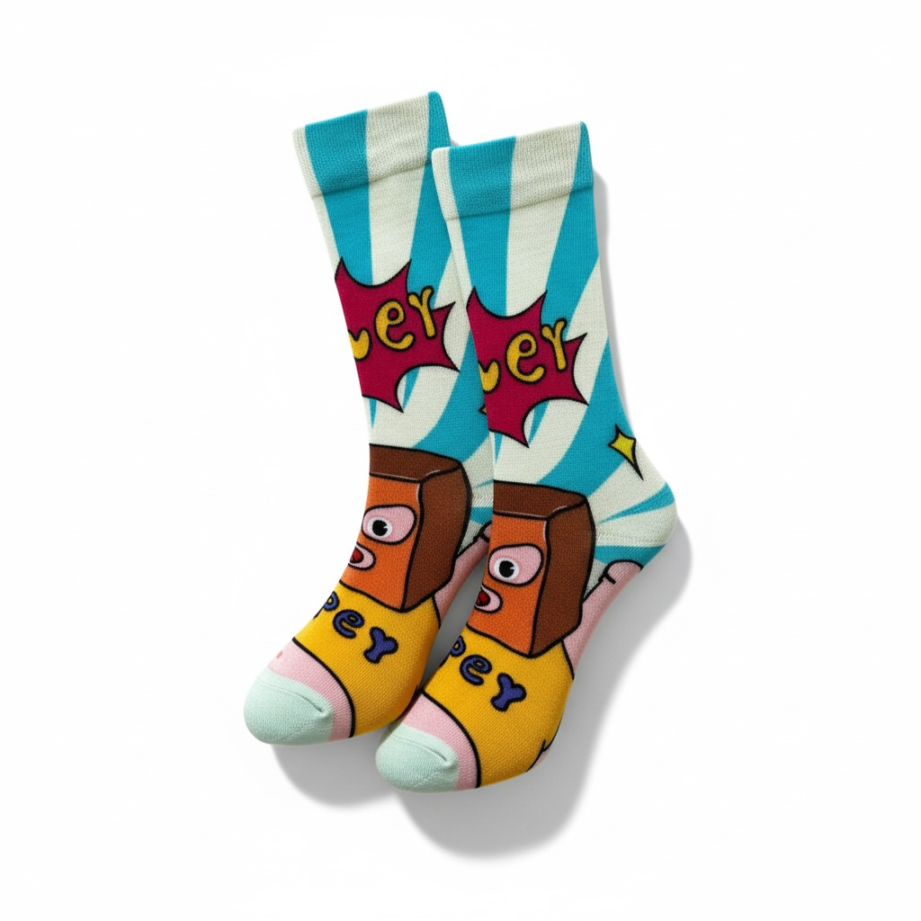 Super Pop Art Desenli Eğlenceli Çorap, enerjik renkleri ve çizgi roman havasındaki tasarımıyla tarzına anında karakter katar. Günlük kombinlerini renklendirmek, dikkat çekmek ve stiline eğlence katmak isteyenler için tasarlandı.